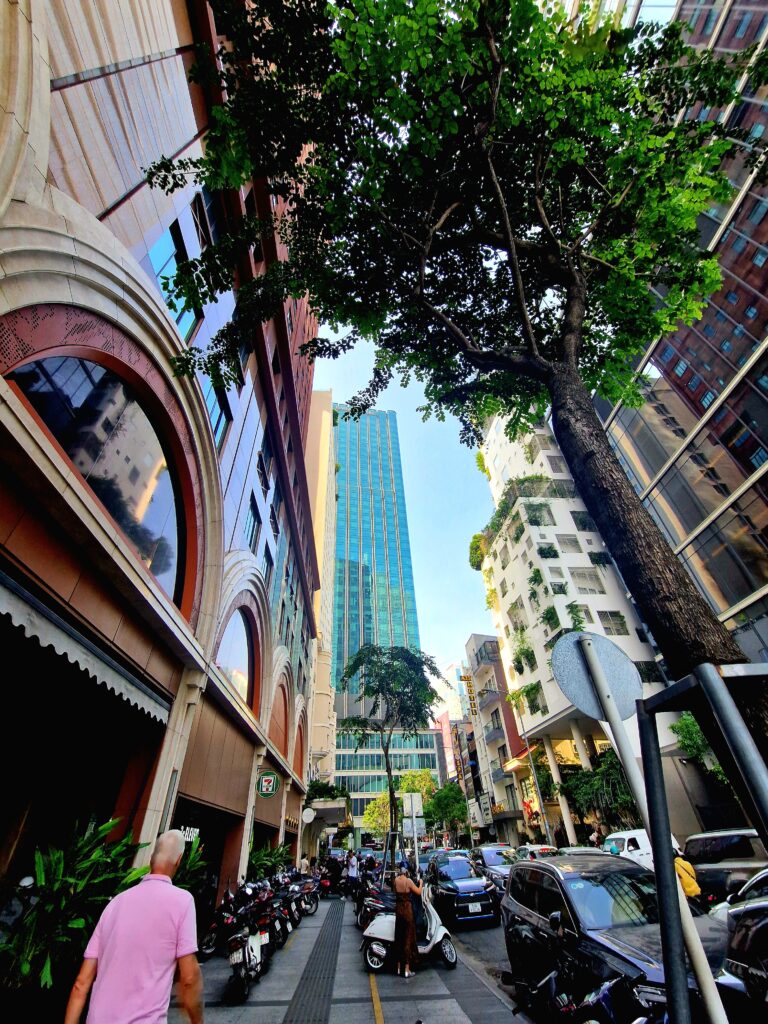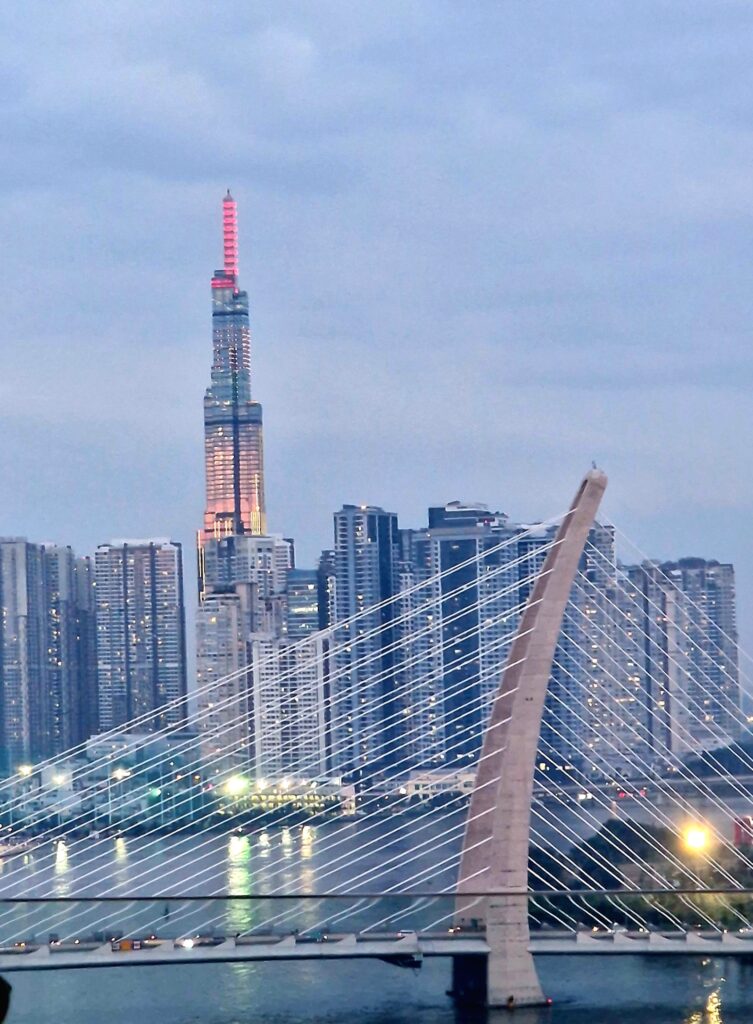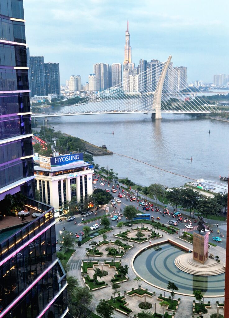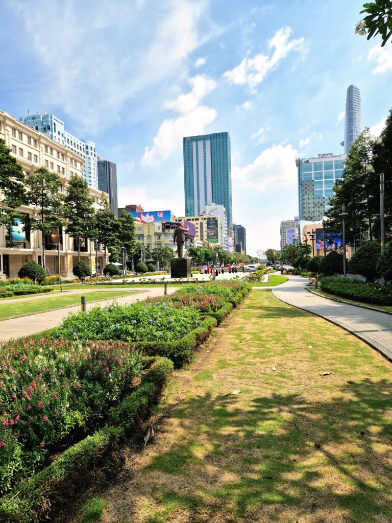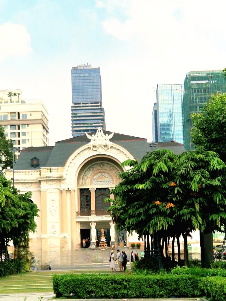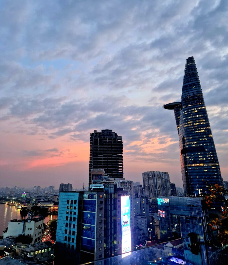 Från takterrassen kan man också se en blandning av gammalt och nytt. De koloniala fasaderna påminner om stadens franska arv, medan moderna höghus reser sig i bakgrunden. En av skyskraporna Bitexco Financial Tower är en ikonisk skyskrapa med en höjd på 262 meter med antenn och 68 våningar mitt i centrala Ho Chi Minh-staden. Byggnaden invigdes 2010 och fungerar som både kontors- och besökscentrum med ett av stadens mest kända utsiktsdäck.