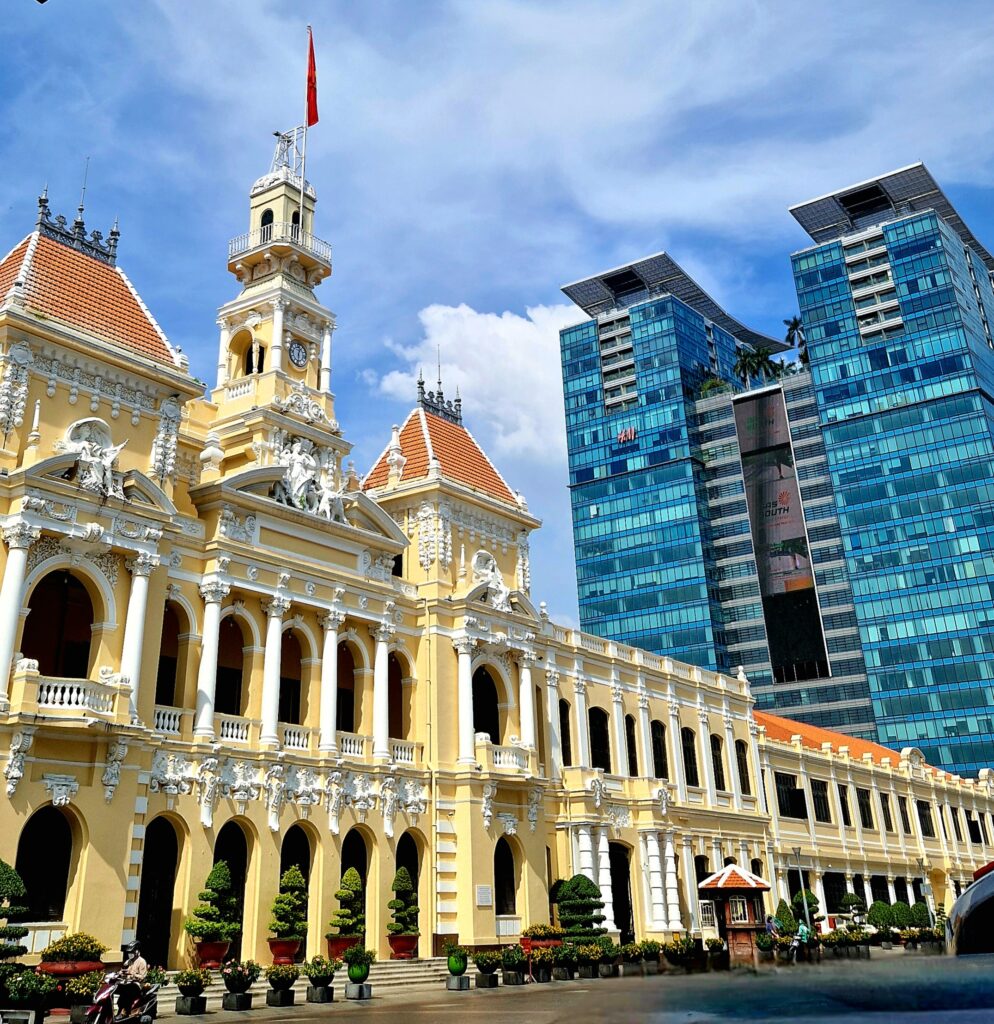 Mitt i hjärtat av Ho Chi Minh-staden reser sig en majestätisk gul byggnad som en gång fungerade som Hôtel de Ville, stadens officiella stadshus under fransk kolonialtid och idag hem för People’s Committee i Ho Chi Minh-staden. Byggnaden färdigställdes i början av 1900‑talet och är tydligt inspirerad av det berömda Hôtel de Ville i Paris. Dess långa gula fasad, eleganta pelare, symmetriska fönster och centraltorn utgör ett typexempel på fransk kolonialarkitektur och ger platsen en lite kunglig känsla, mitt i stadens pulserande centrum.