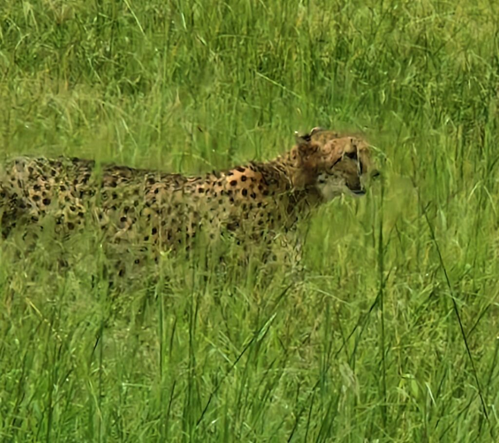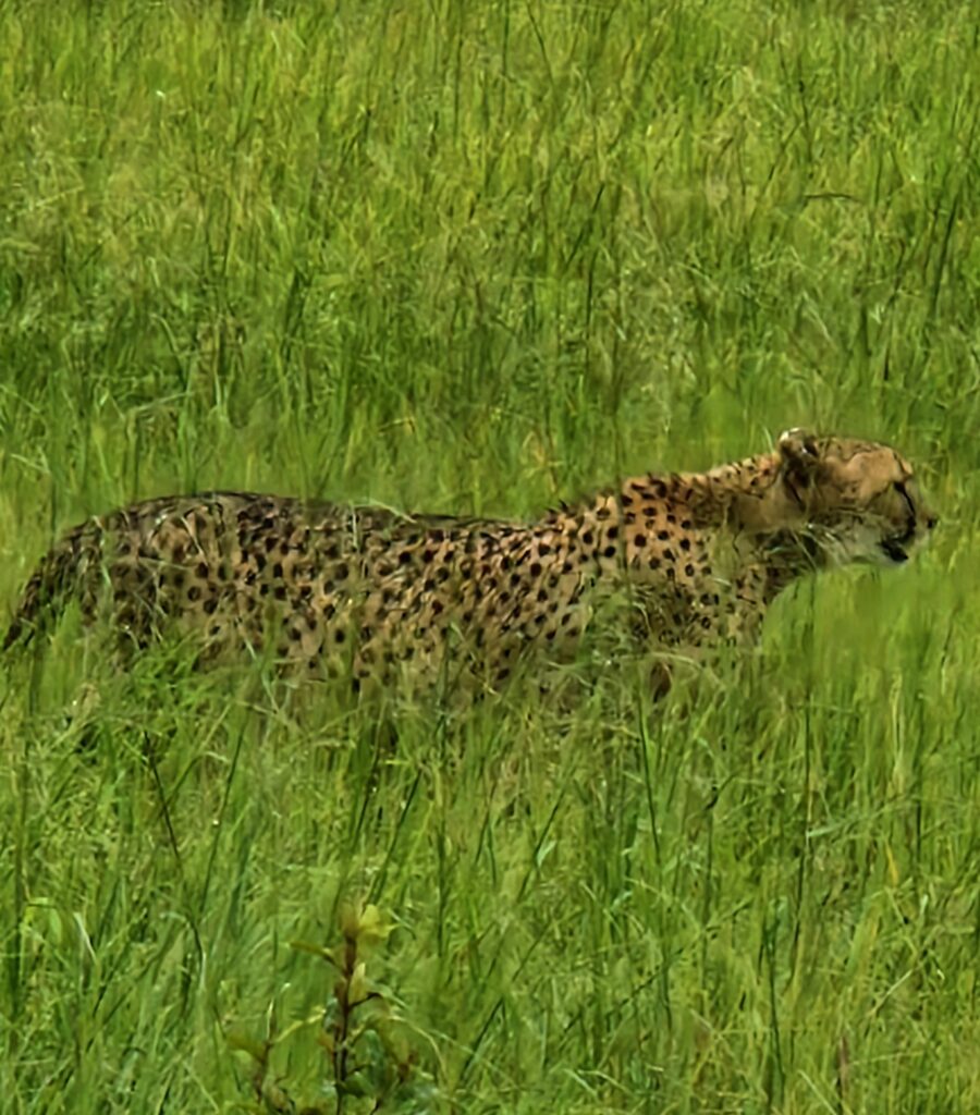 Kanske är det största ögonblicket när vi ser en gepard, en Chita, smyga fram genom gräset nära vägen. Tyst, smidigt och elegant rör den sig. Så otroligt vacker och så fantastiskt att vi får se den på så nära håll.