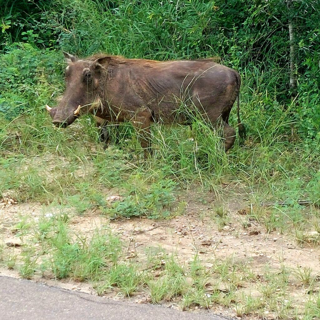 Ett av de vanligaste djuren i Kruger ska vara vårtsvin men det är först vid andra dagen som vi ser ett par stycken.
