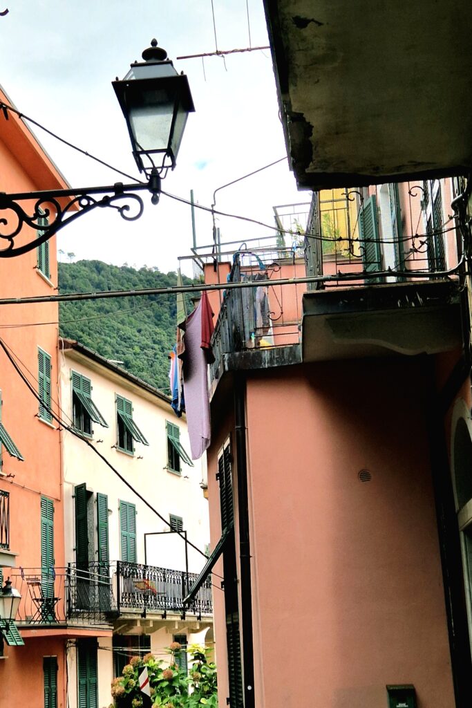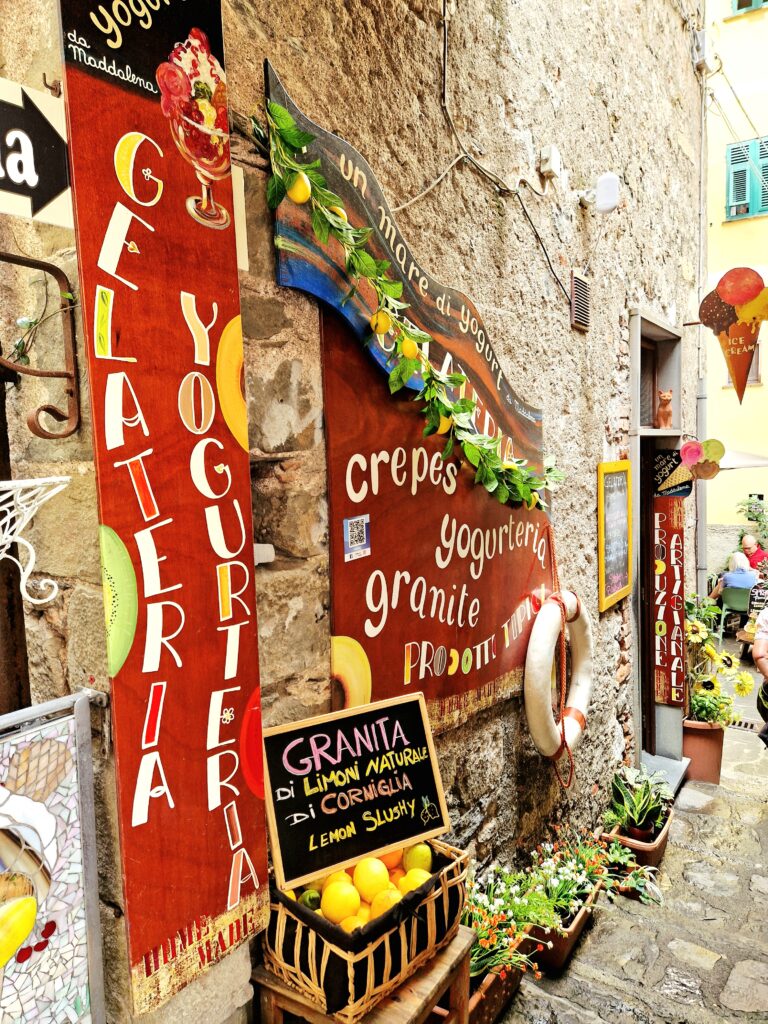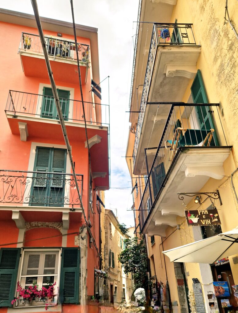 På bara fem minuter är vi uppe i stadskärnan och här möts vi av en by som är betydligt mer stillsam än sina grannar i Cinque Terre. Vi följer de smala gränderna som går emellan de pastellfärgade husen och leder oss vidare till små torg, lokala caféer och ett par butiker. I kvarteren rådet ett lugnt tempo åtminstone jämfört med Riomaggiore och Manarola som vi precis besökt under samma morgon och förmiddag. Här i Corniglia är det förstås en hel del turister men långt ifrån vad vi möter i de andra byarna.