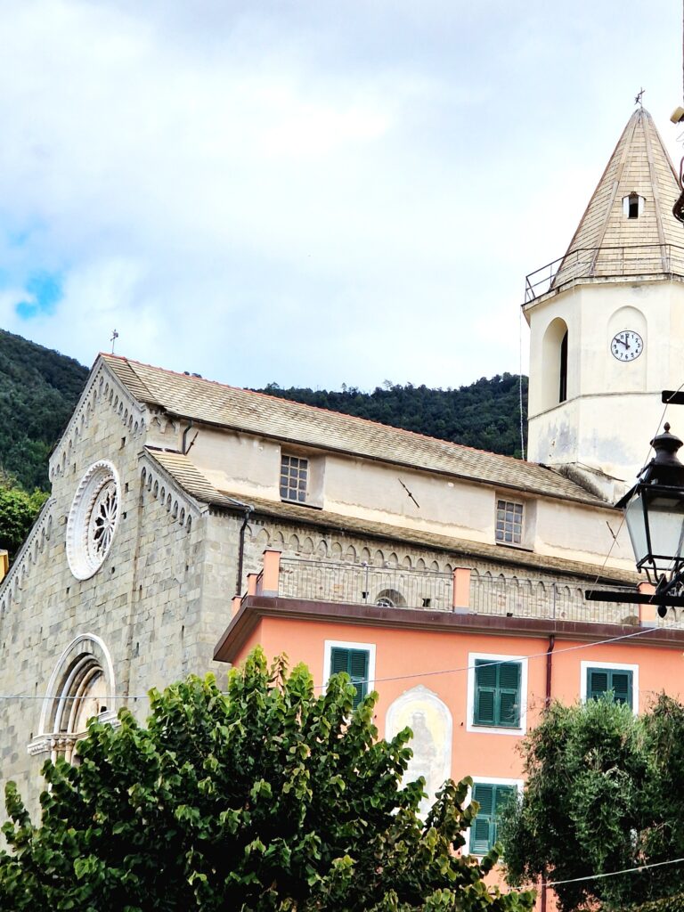 Kyrkan, San Pietro byggdes på 1300-talet och är ett exempel på den liguriska gotiska stilen. Kyrkan är byggd i sten och har en vacker fasad med ett runt rosettfönster och dekorativa detaljer. Kyrkan är en av de viktigaste historiska byggnaderna i Corniglia och visar hur byn såg ut under medeltiden.