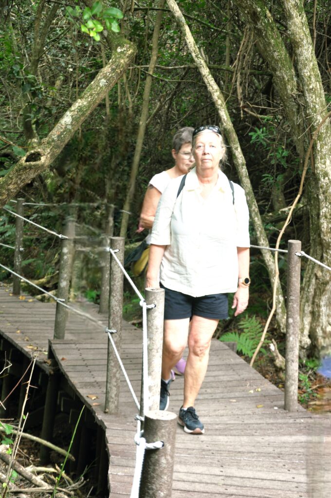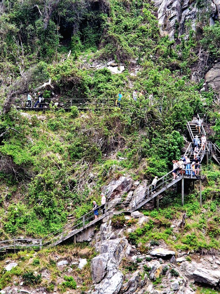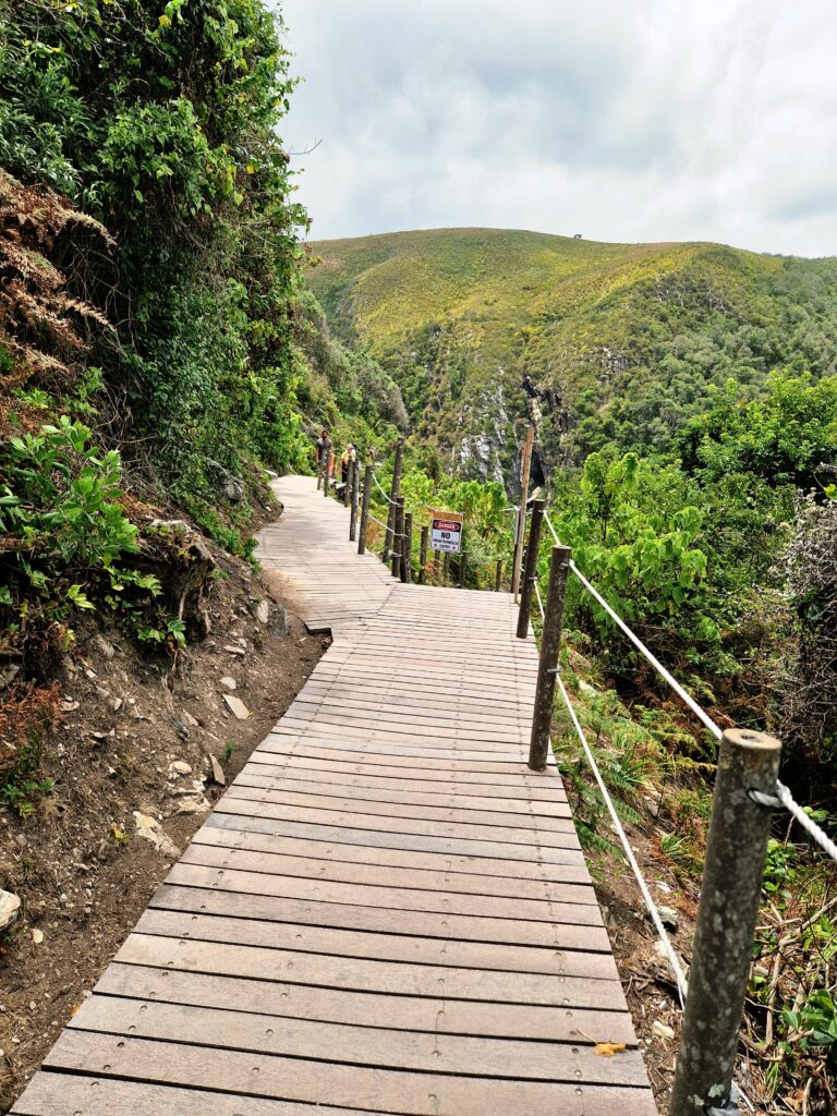 Vi får dock nöja oss med att göra en kortare vandring på cirka 1,5 kilometer enkel väg. Dessutom är det endast en bro över Storm River som är öppen nu när vi är här i januari 2026. De andra två är stängda på grund av ett pågående renoveringsprojekt som ska förbättra säkerheten och hållbarheten för broarna. Arbetet sker i faser, så under vårt besök gick det bara att använda huvudbron, medan de mindre broarna skulle öppna igen senare under året. Verkligen lite typiskt!