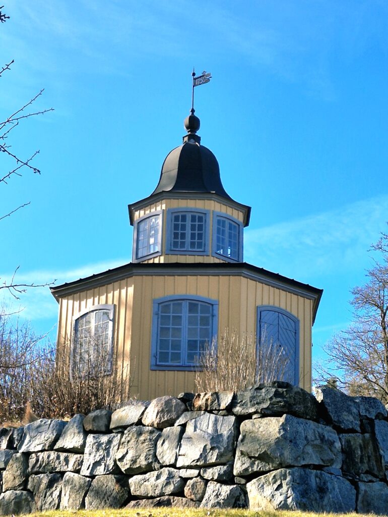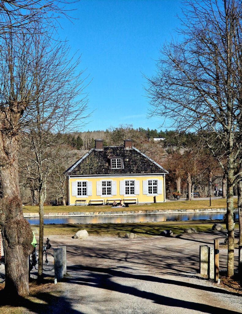 Vi gör det ganska lätt för oss och tar en kortare promenad, främst för att beundra de vackra vyerna från Utsiktsberget. Det ligger relativt nära de centrala delarna av området, vid herrgården och parkeringarna, och nås via stigar från den sista parkeringsplatsen. Väl uppe får man en vidsträckt utsikt över omgivningarna och delar av Stockholms inlopp.
