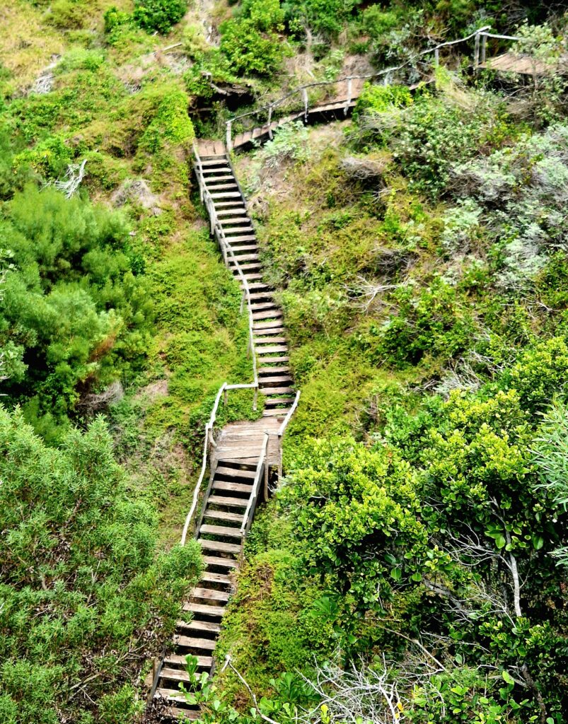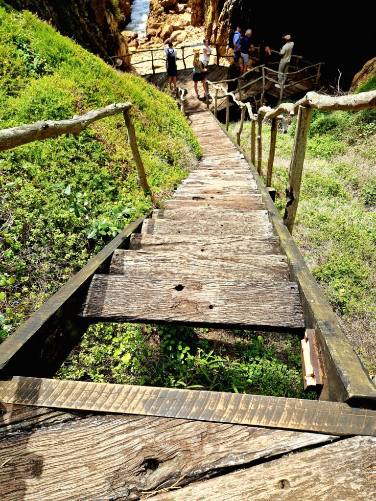 Det är en lättvandrad stig särskilt när det går nedför. Det finns även en del trappor, vilket underlättar vid de brantaste partierna. Några ur resesällskapet väljer att ta bussen ner vilket är förståeligt om man kanske har problem med knän och höfter. Jag blir dock lite skrämd när en ur sällskapet berättar att han varit här förut och samtidigt visar en bild på sin mobil, där en farlig orm slingrar sig utmed stigen.