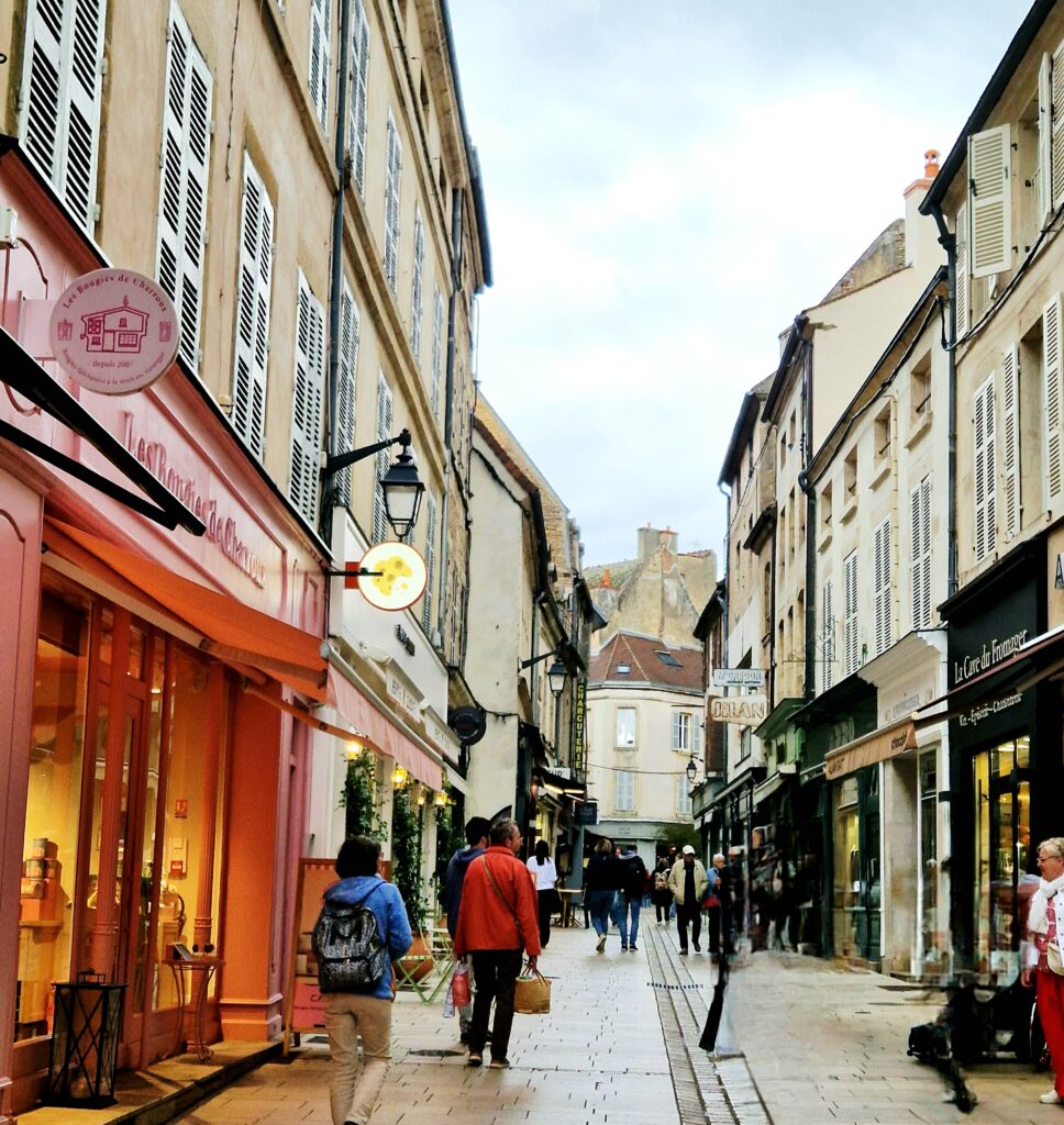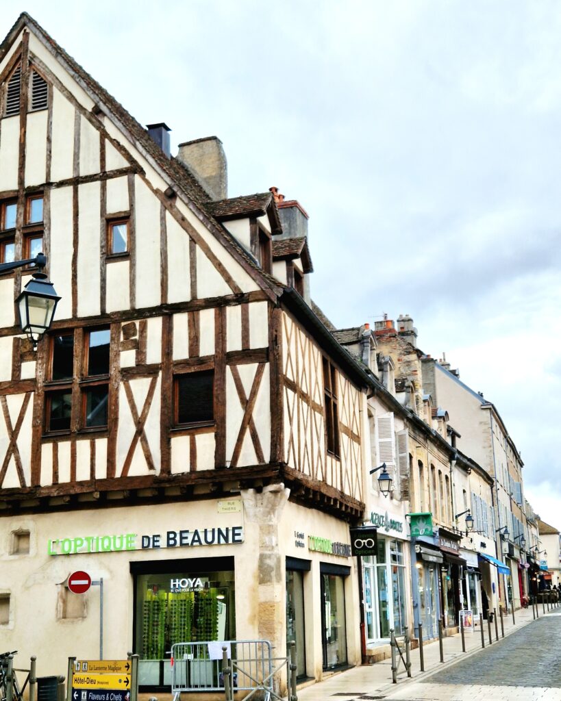 Att promenera genom den gamla stadskärnan i Beaune är riktigt mysigt. Här slingrar sig smala de kullerstensgator mellan tätt liggande hus med fasader i kalksten och tegel. Många av byggnaderna bär fortfarande spår av traditionell bourgognisk arkitektur med synliga träbjälkar och takpannor i varma röd- och bruntoner. Stämningen är lugn och pittoresk, med små kaféer och vinbutiker som kantar gatorna.