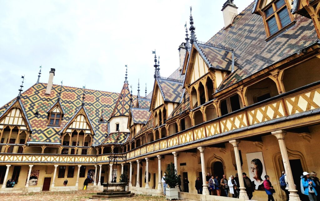 Mitt i staden ligger det kanske mest ikoniska landmärket, Hospices de Beaune, även känt som Hôtel-Dieu. Byggnaden grundades på 1400-talet som ett sjukhus för fattiga och sjuka, efter Hundraårskriget när regionen var hårt drabbad.