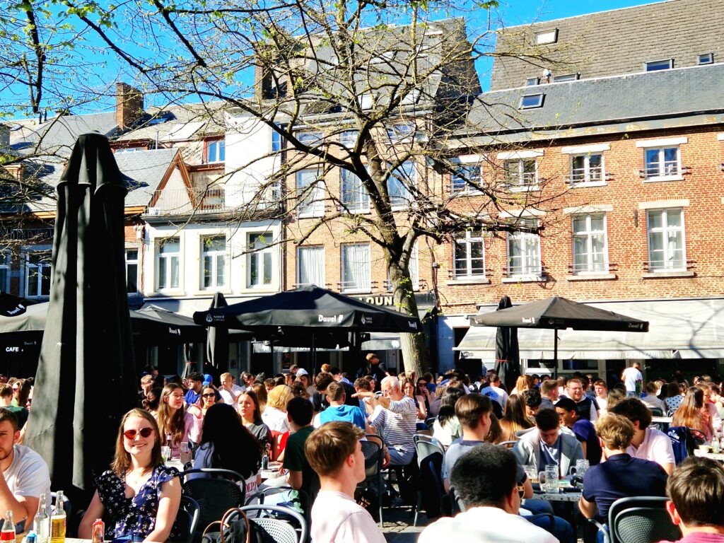 Om våren har kommit en bra bit i Tyskland är det nästan sommarvarmt i Belgien. Det är omkring 25 grader och det riktigt bubblar av folkliv i Namur. Staden har en tydlig studentprägel, med campus mitt i centrum samt ett rikt studentliv, caféer och kulturella aktiviteter.