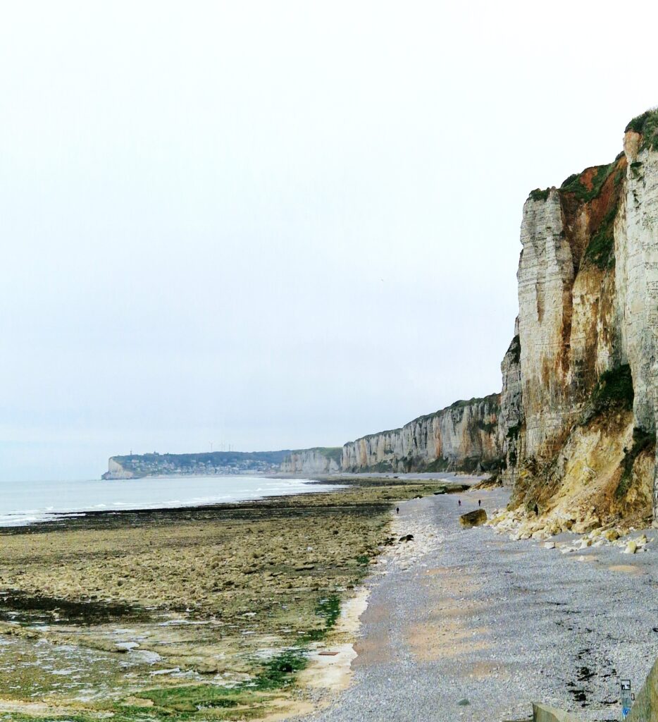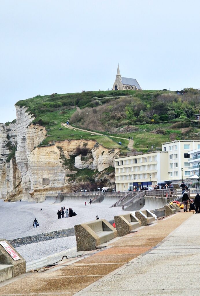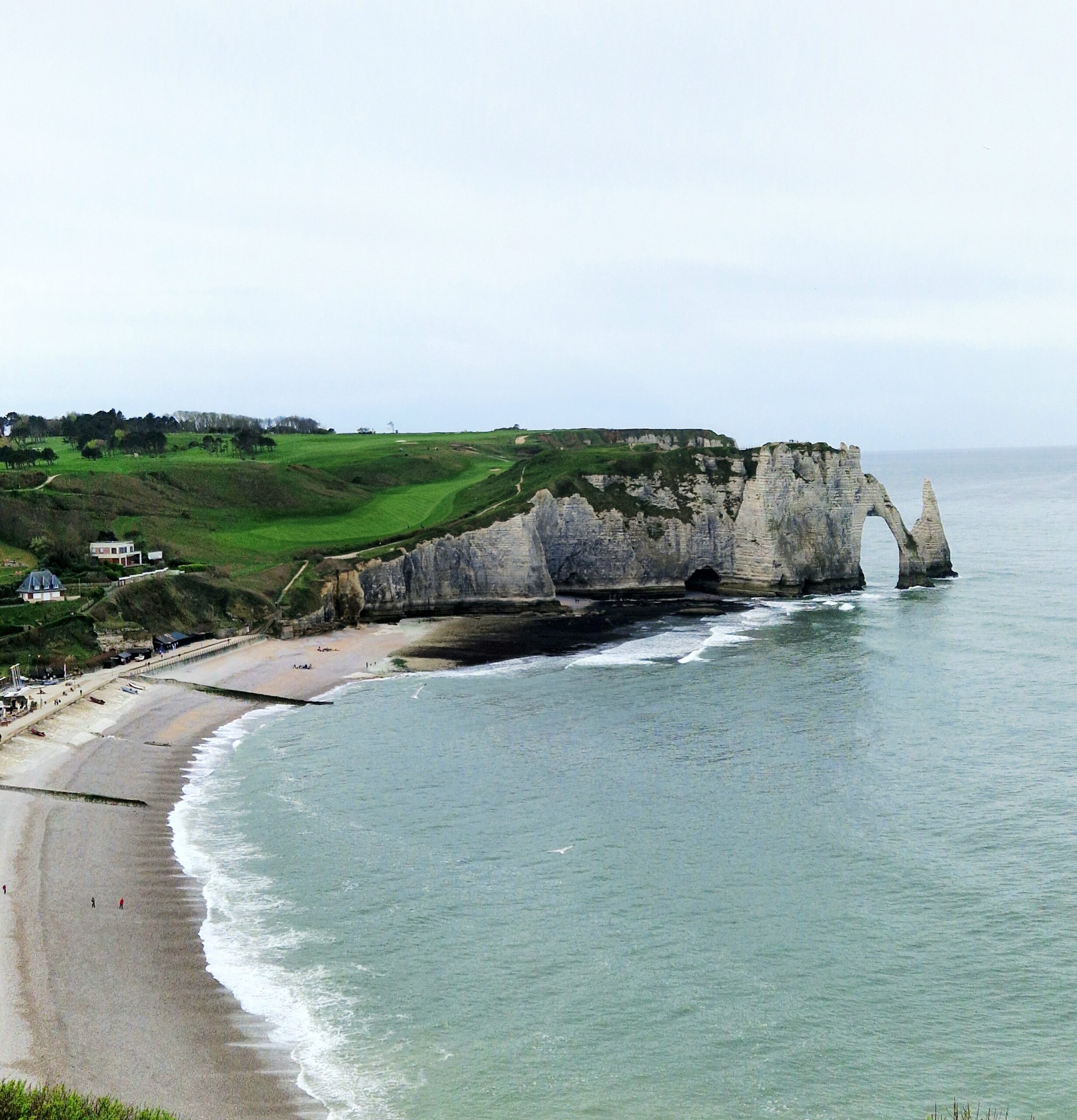 Vår resa fortsätter mot kusten till Normandie där vi besöker kustortern, Étretat som är känd för sina dramatiska vita klippor och naturliga stenbågar, särskilt formationen, Falaise d’Aval ute i havet och Falaise d’Amont, där det finns en liten kyrka på toppen.