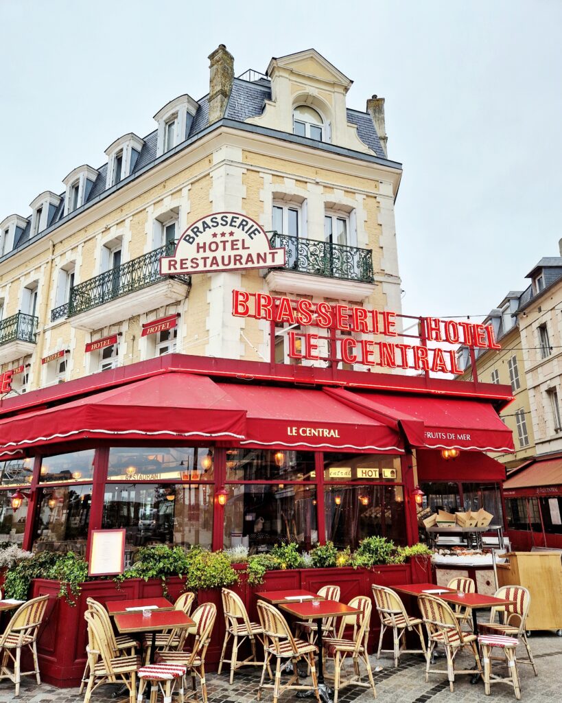 I Trouville-sur-Mer bor vi bokstavligen i en restaurang. Hotellet inryms ovanför den omåttligt populära och väldigt trevliga restaurangen, Le Central mitt i stan.