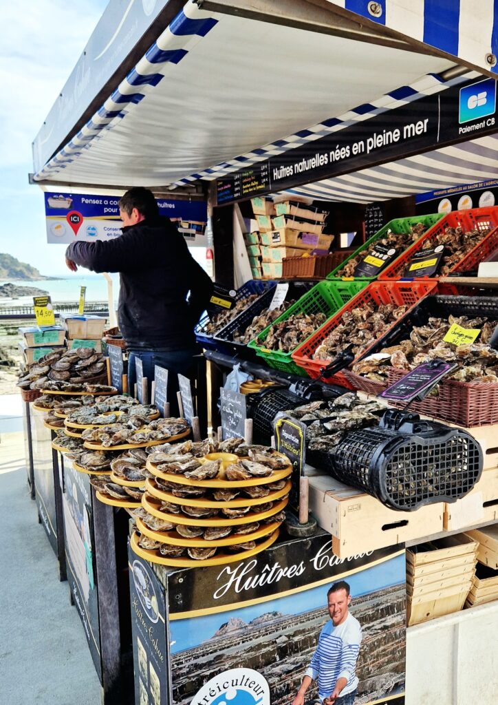 Morgonen därpå fortsätter färden vidare i Bretagne. Vi besöker ostronstaden Cancale där man trots tidig söndagsmorgon redan har öppnat sina stånd för försäljning av pinfärska ostron som odlas intill.
